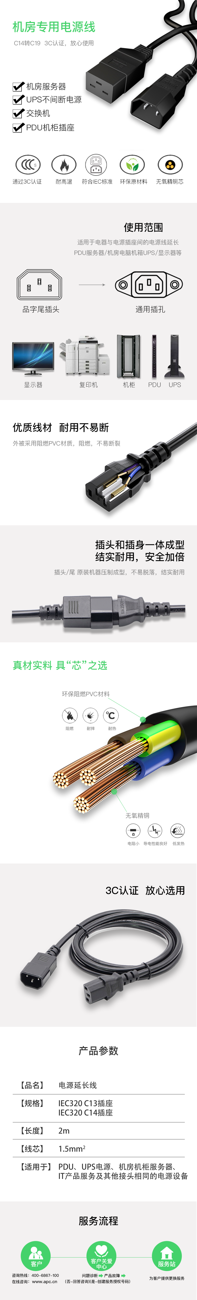 C14-C19服务器电源线 机箱延长线 1.5平方线芯PDU2米