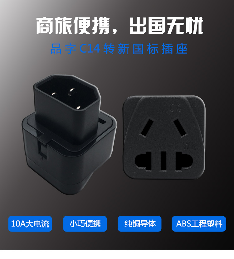 C14转新国标转换插头 PDU服务器电脑机箱电源转换器品字转三孔2脚
