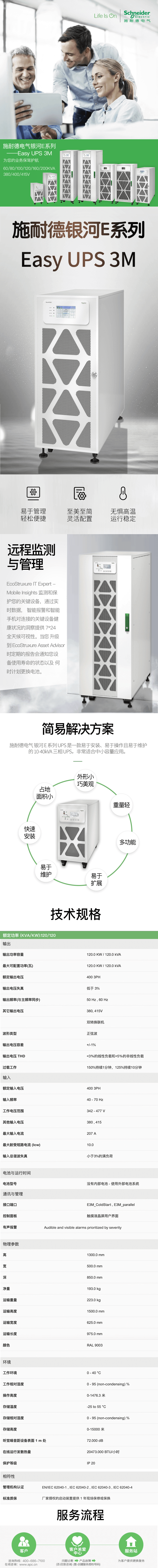 E3MUPS120KHS型号为:Easy UPS 3M 120kVA 3:3 UPS,可外接電池使用