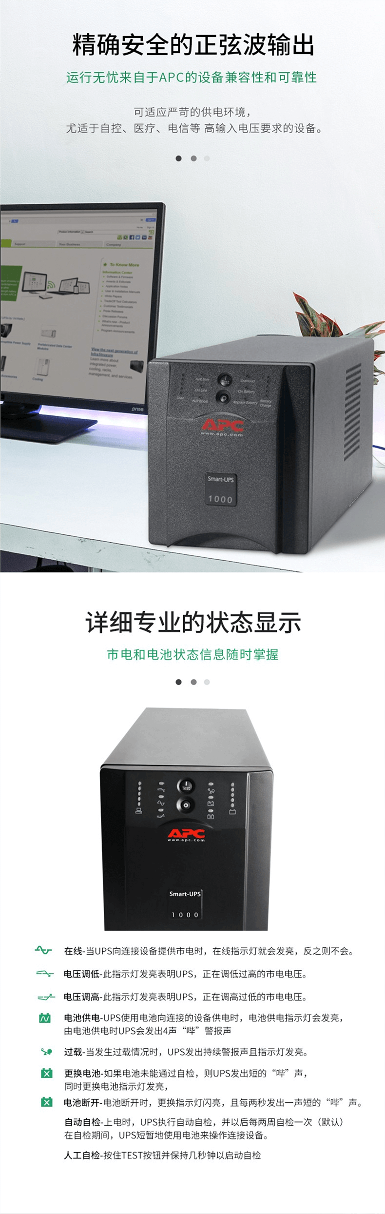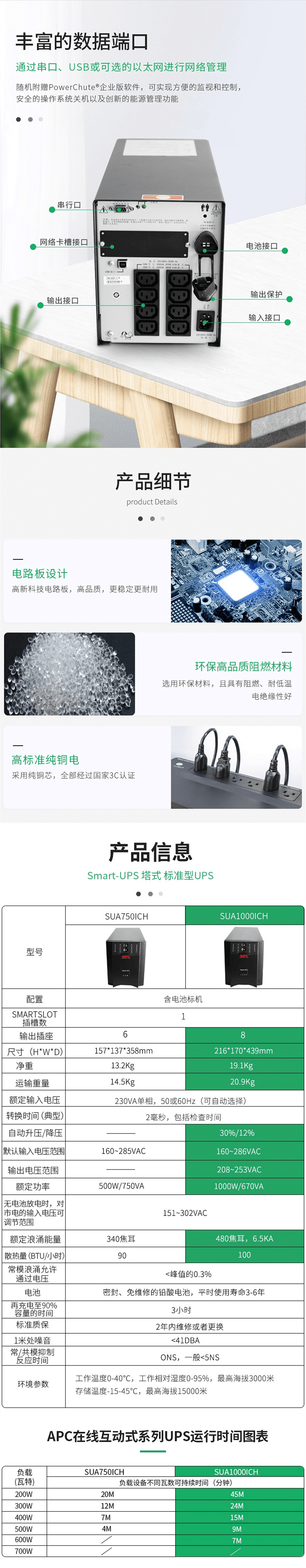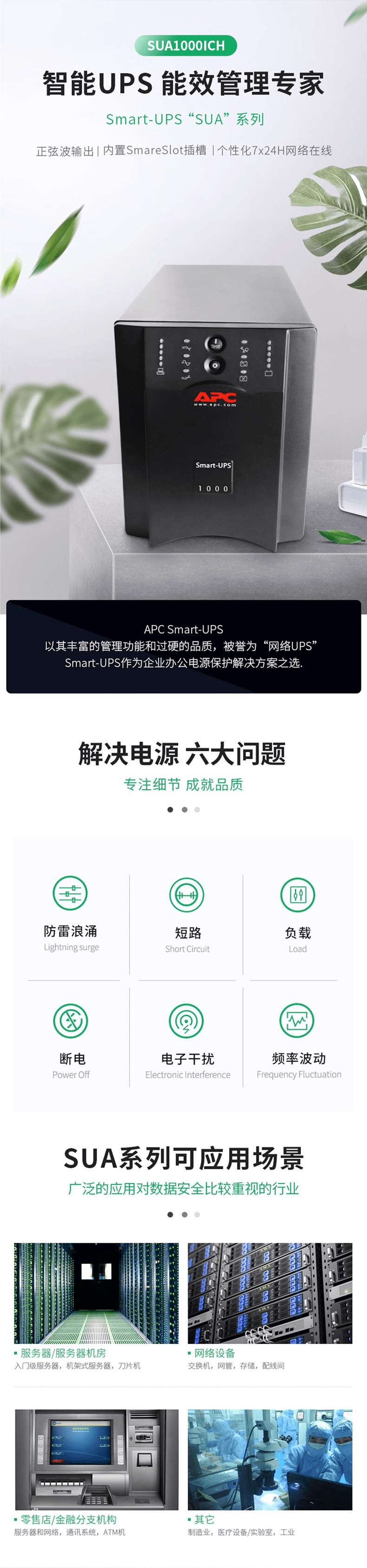 APC Smart-SUA1000ICH 1000VA/670W标机 塔式后备式UPS电源2年质保(已停产)