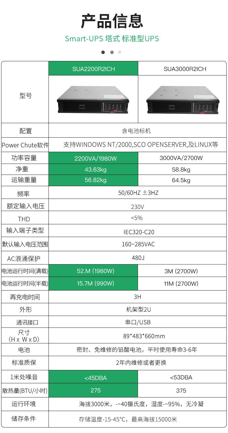APCSmart-SUA2200R2ICH 2200VA/1980W标机 机架2U在线互动式UPS 2年质保(已停产)