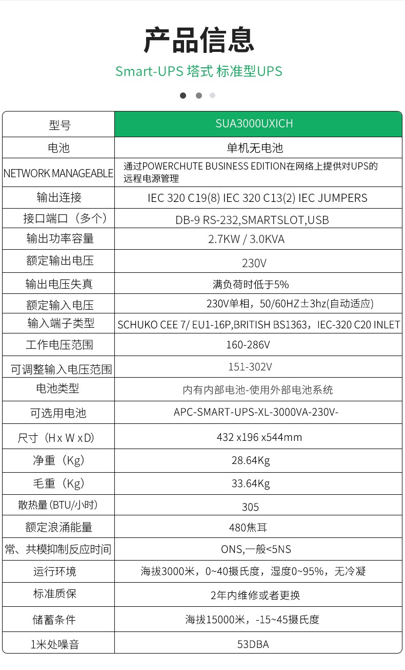 APC Smart-SUA3000UXICH 3000VA/2700W长机 塔式在线互动式UPS电源2年质保(已停产)