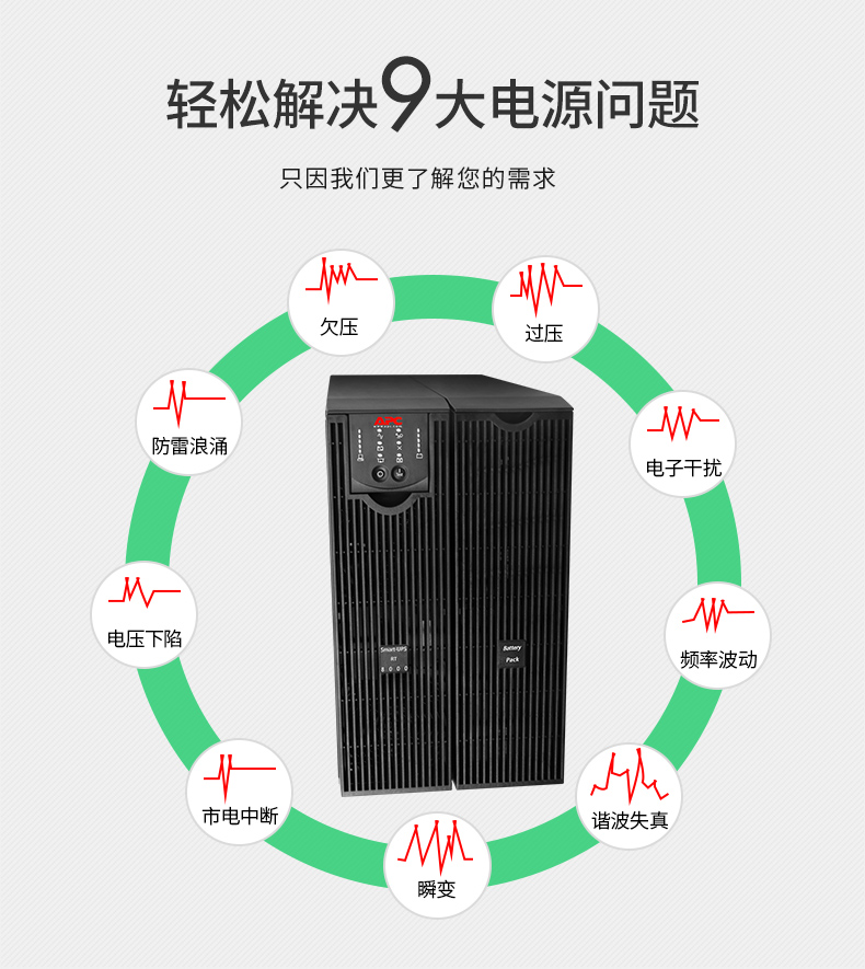 APC Smart-SURT8000UXICH 8KVA/6.4KW,230V长机 机架/塔式在线式UPS电源2年质保