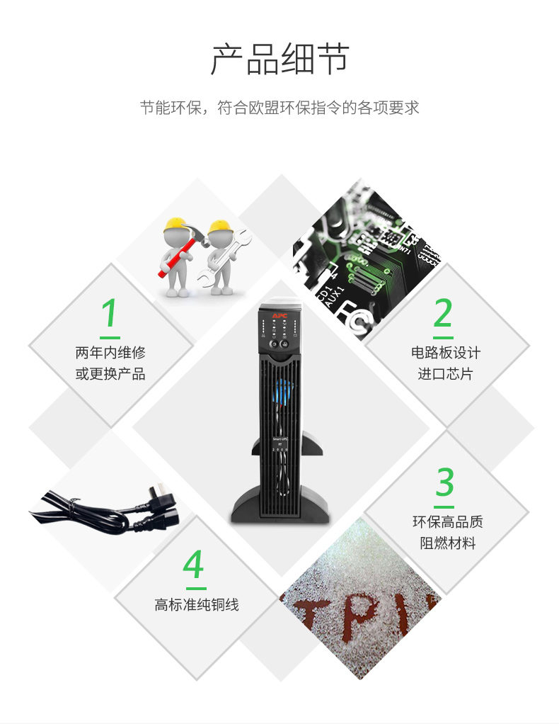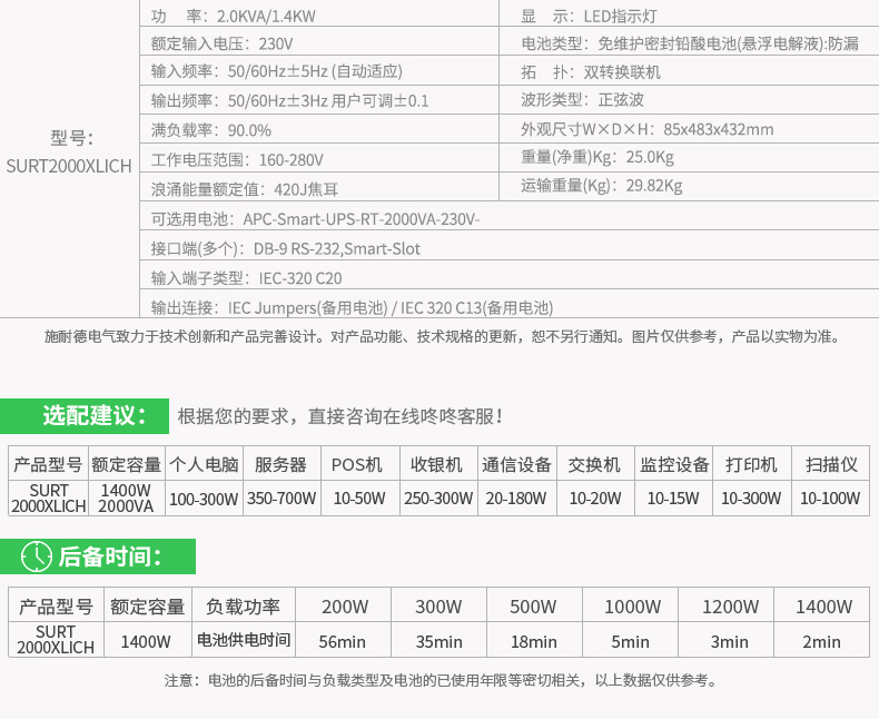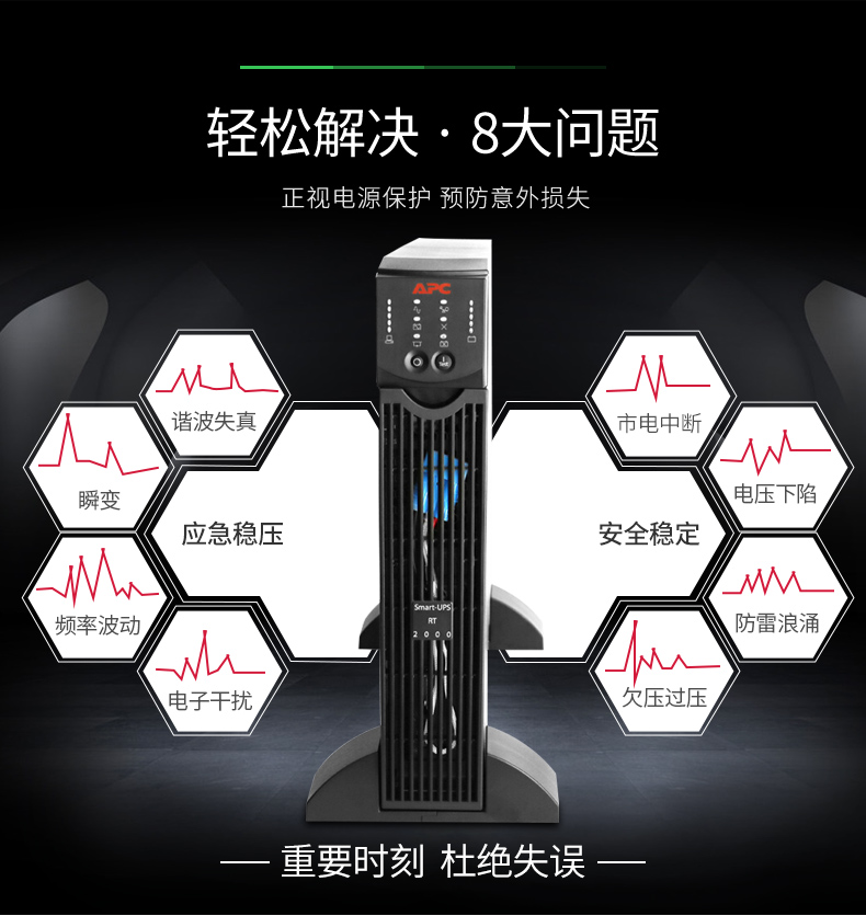 APC Smart-SURT2000XLICH 2KVA/1.4KW标机 机架/塔式在线式UPS电源2年质保
