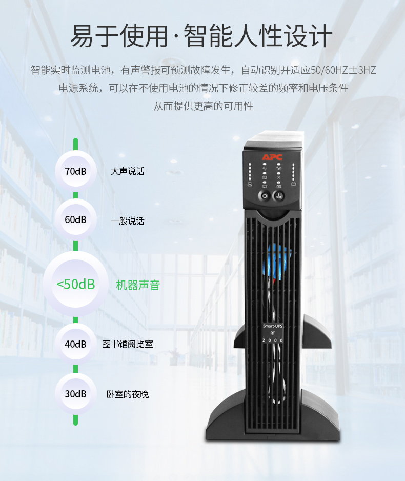 • 产品描述:APC公司的Smart-UPS RT,2000VA,230V,适用于中国 在可扩展的运行时间内提供高密度的双转换在线式电源保护 包括: CD with software , Smart UPS signalling RS-232 cable , User Manual .Smart-UPS On-Line能够为服务器、语音/数据网络、医学实验室和轻工业应用提供高密度、真正的双转换在线式电源保护。Smart-UPS On-Line的高度从2U至12U不等,能够以机架式/塔式可转换形式支持从1到20kVA的负载。最新的15kVA和