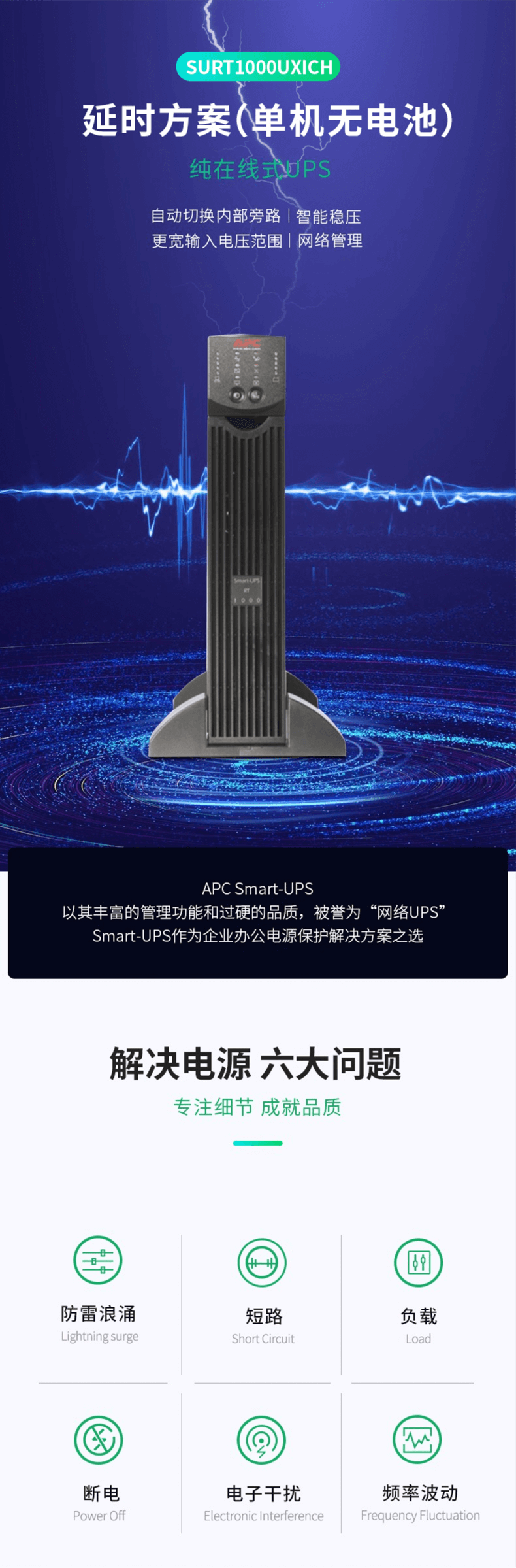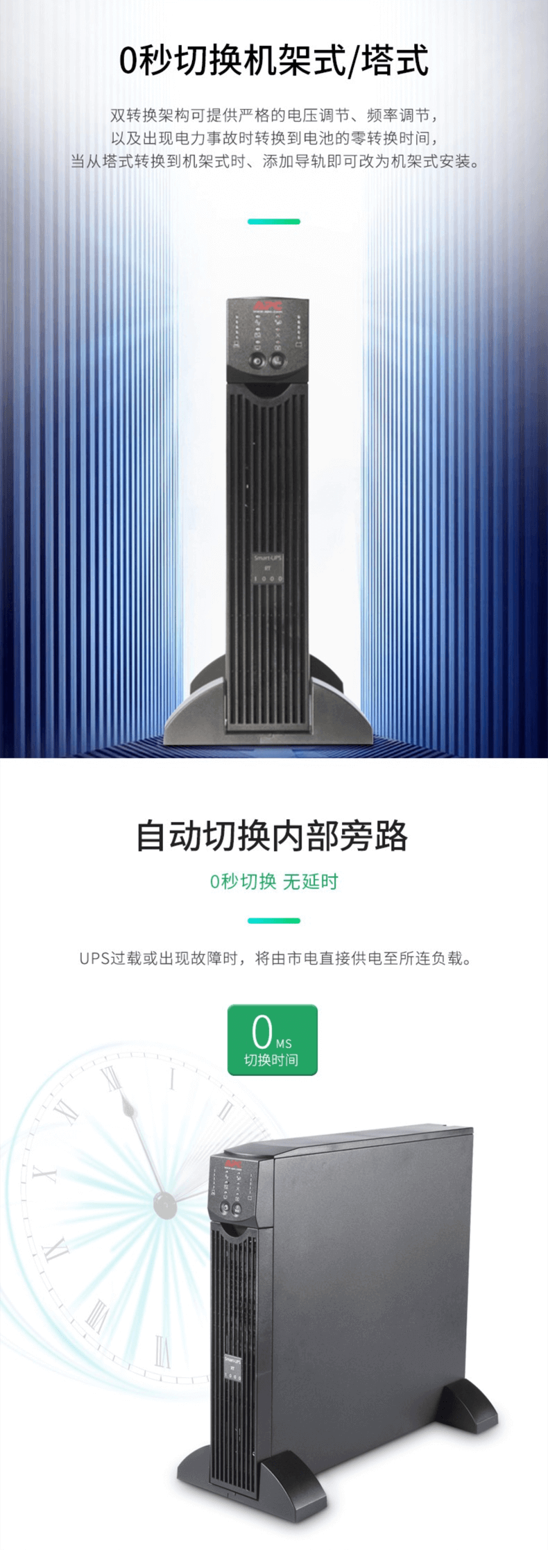 APC Smart-SURT1000UXICH 1KVA/700W长机 机架/塔式灵活切换的在线式UPS电源2年质保