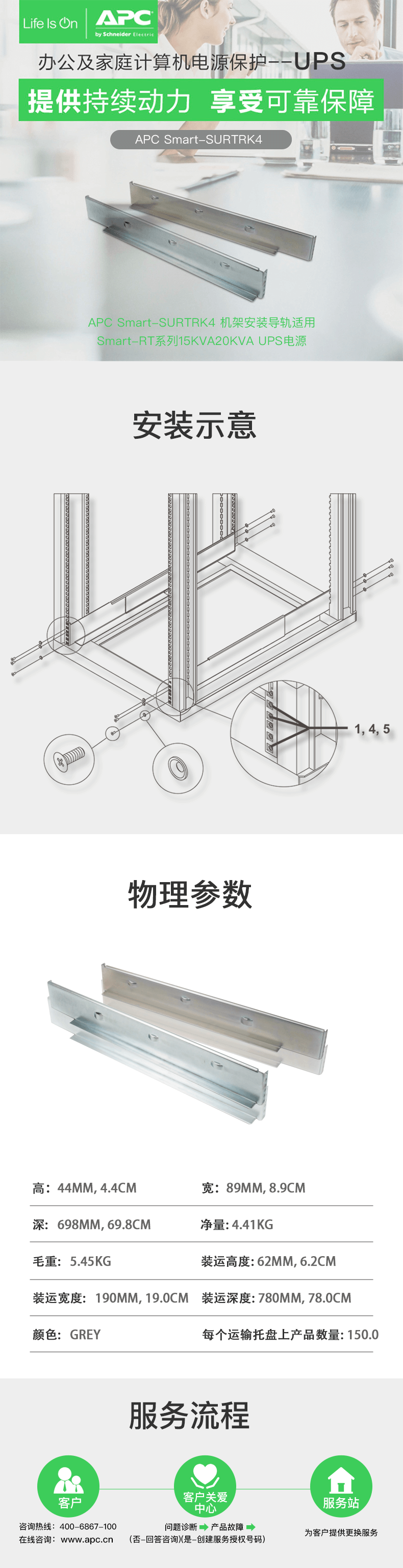 APC Smart-SURTRK4 机架安装导轨适用Smart-RT系列15KVA20KVA UPS电源