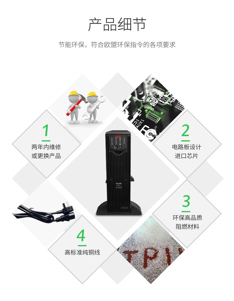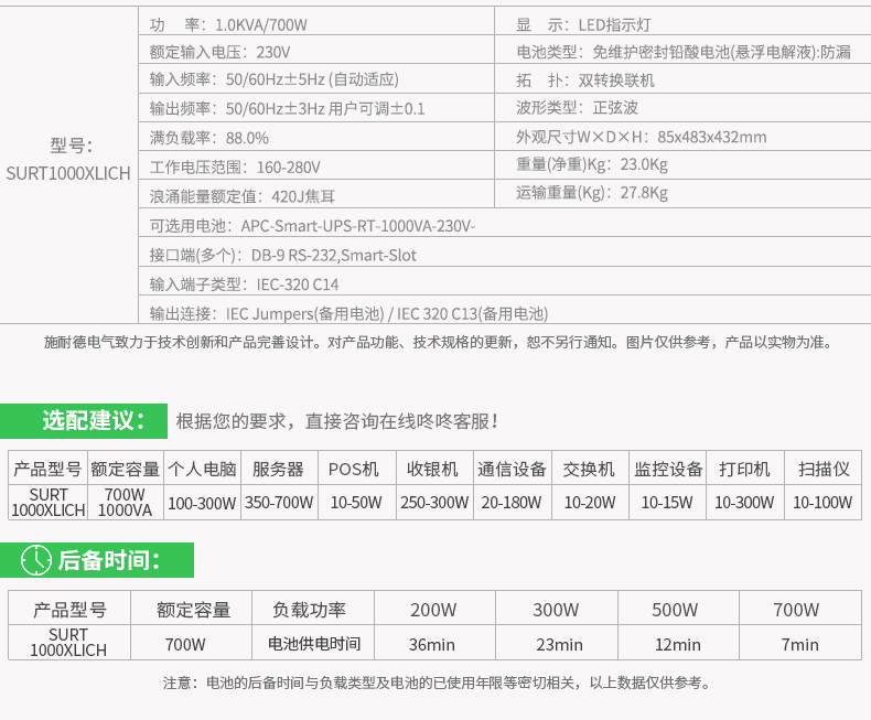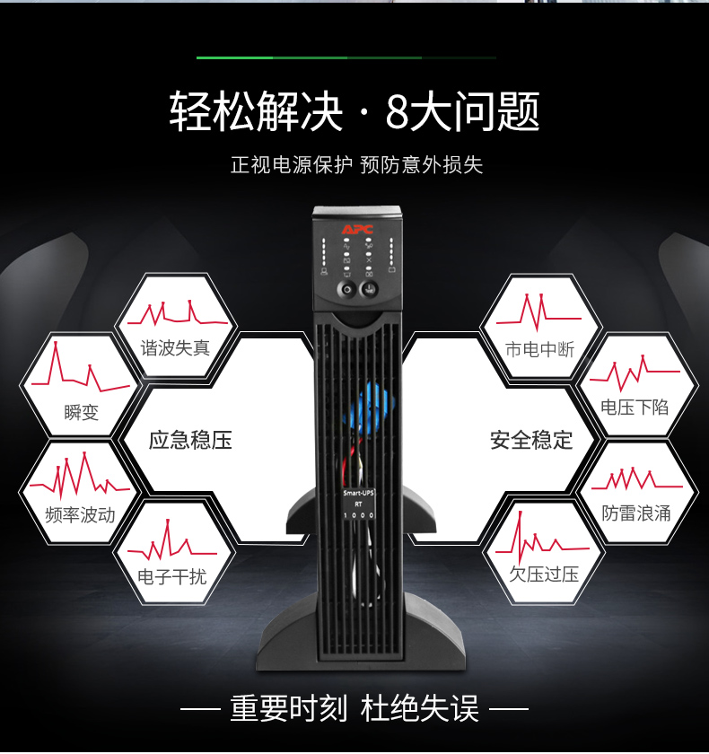 APC Smart-SURT1000XLICH 1KVA/700W标机 机架/塔式在线式UPS电源2年质保