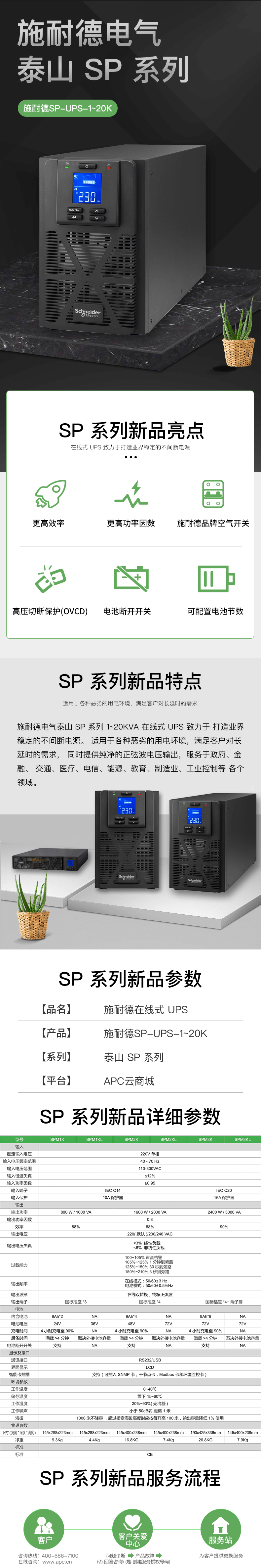 • 产品描述:施耐德UPS SP3K/SPM3K 3KVA/2.4KW塔式标机 在线式UPS电源 质保2年;施耐德(APC)生产的塔式安装Online-UPS,3KVA,220V,针对中国市场——带内置电池;包括: 软件光盘 、 通信电缆;塔式结构;通过购买网