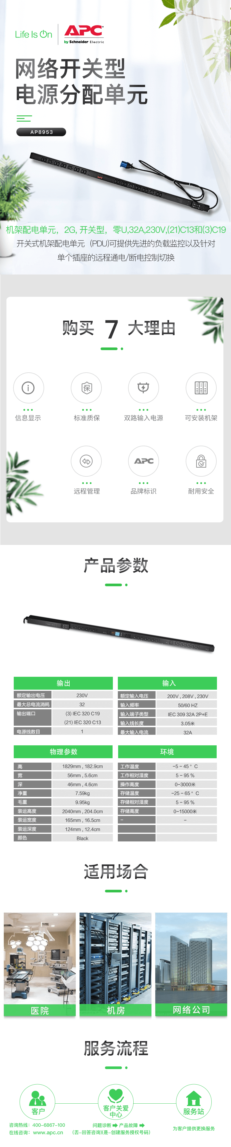 施耐德APC AP8953 机架式机柜专用插座|电源分配单元 2年质保