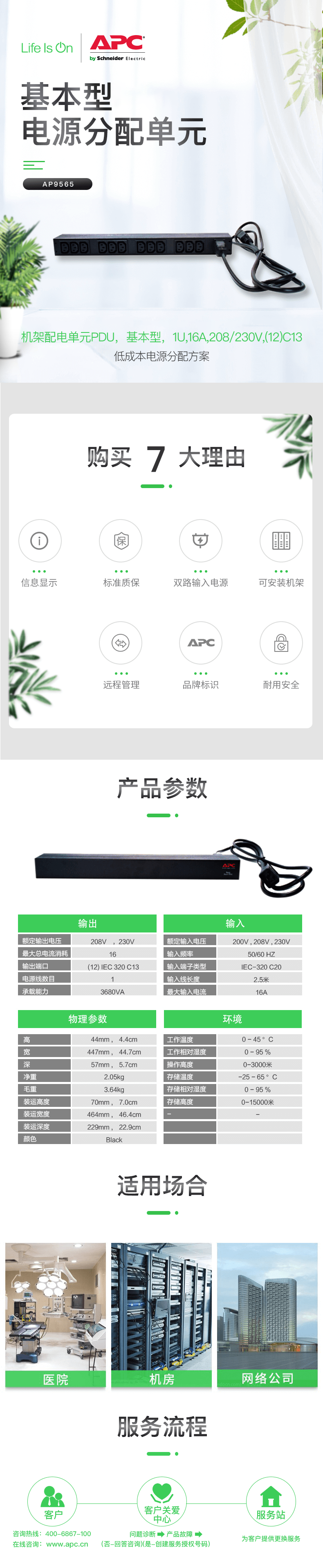 施耐德APC AP9565 新一代机架式PDU 水品安装1U 2年质保