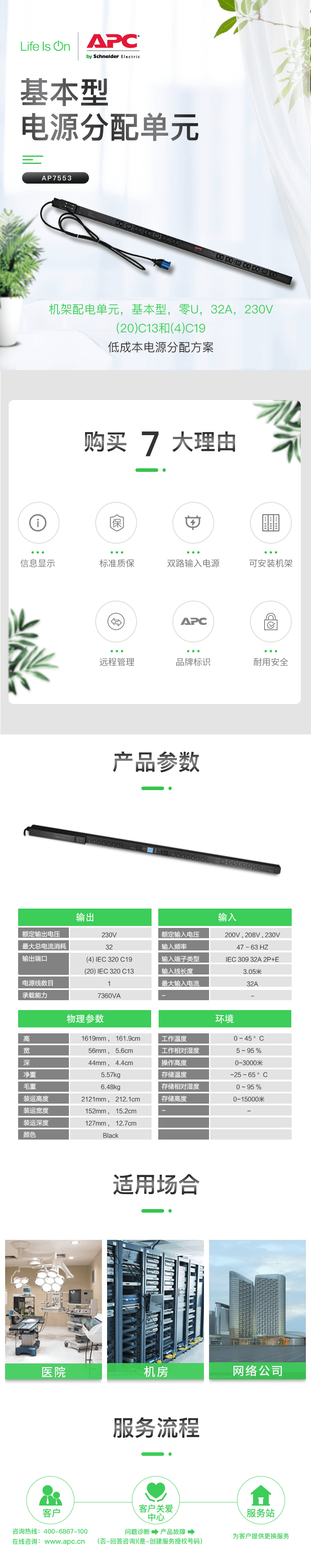 APC AP7553 新一代机架式PDU 垂直安装0U 2年质保