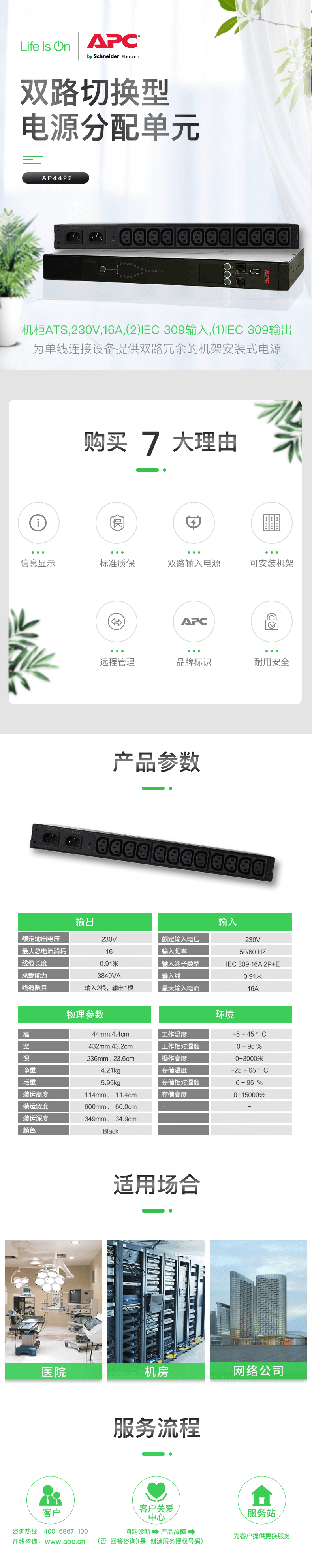 施耐德 APC AP4422A 16A机架式ATS/STS+PDU 机架式电源切换/分配单元