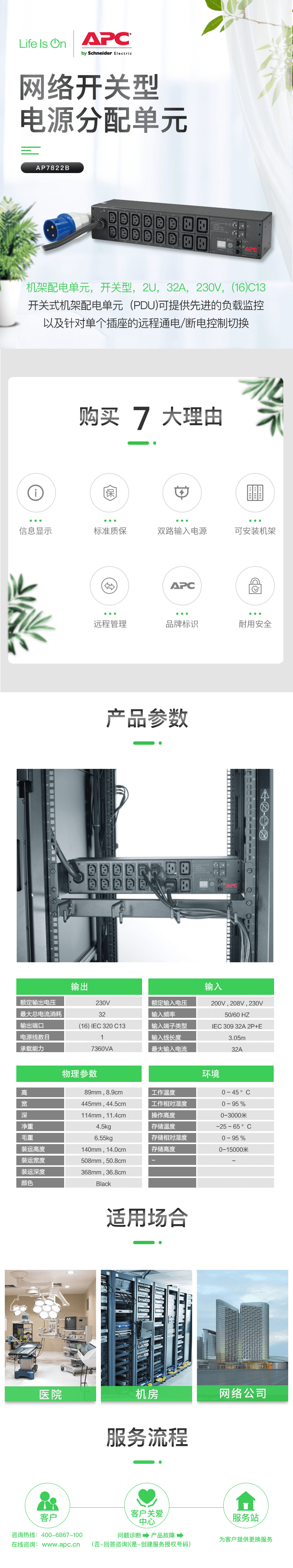 APC 施耐德 AP7822B 计量式PDU 2U32A230VC13*12C19*4
