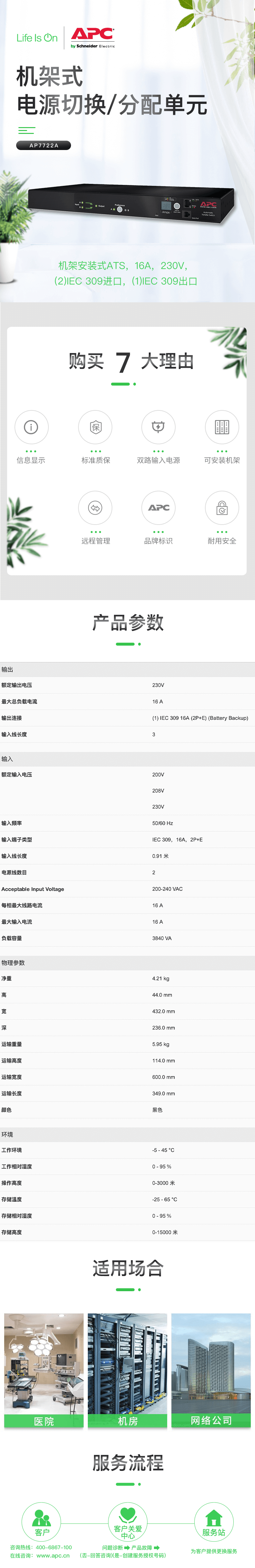 施耐德 APC 机架式ATS/STS+PDU AP7722A 机架式电源切换/分配单元 输入16A