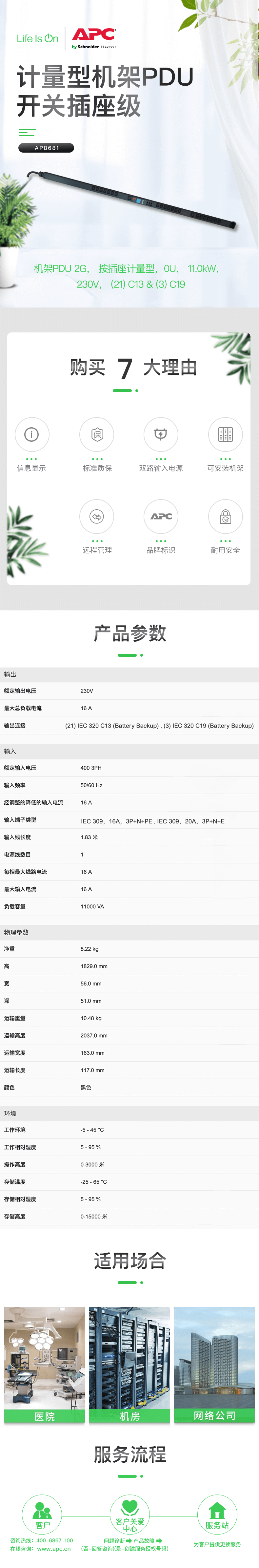 • 产品描述:机架PDU 2G, 按插座计量型,0U, 11.0kW, 230V, (21) C13 amp; (3) C19