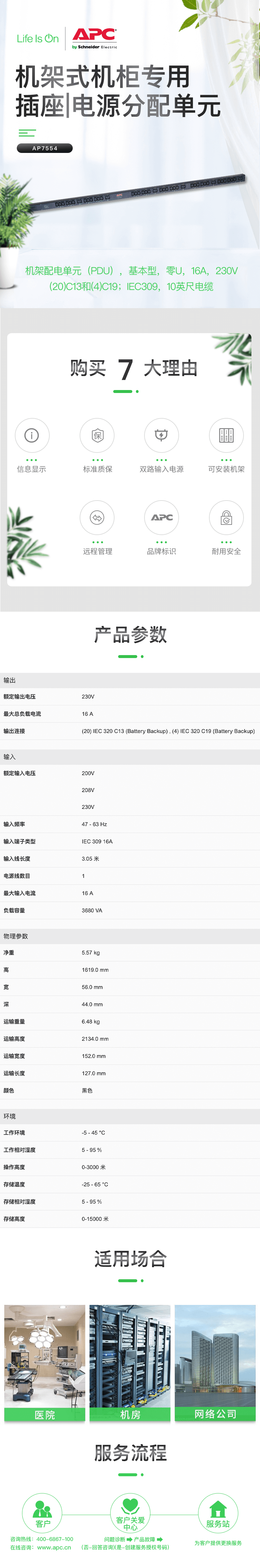 施耐德 APC Rack PDU AP7554 机架式机柜专用插座|电源分配单元 性能稳定 机架式安装