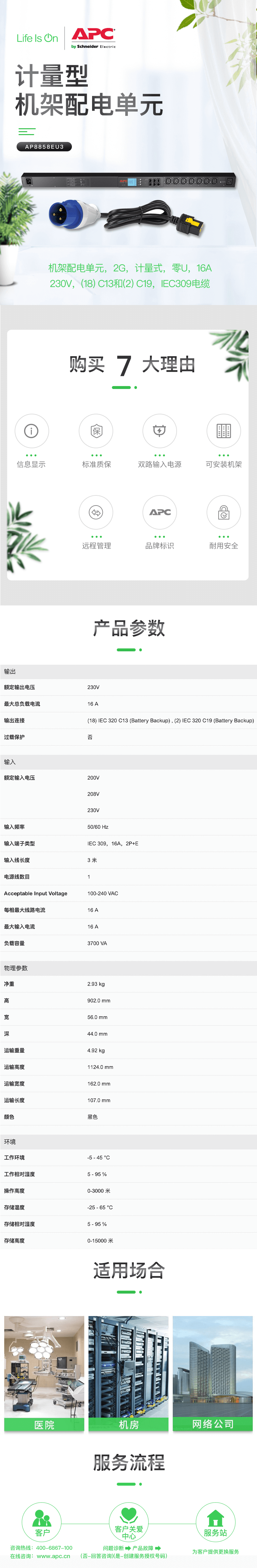 施耐德 APC Metered Rack PDU AP8858EU3 计量型机架配电单元 整组电力计量 远程管理