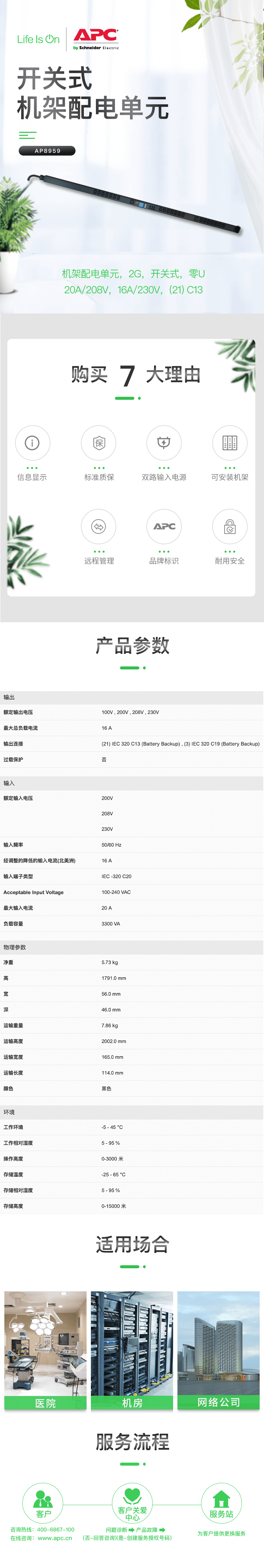施耐德 APC Switched Rack PDU AP8959 开关式机架配电单元 电力计量 远程管理