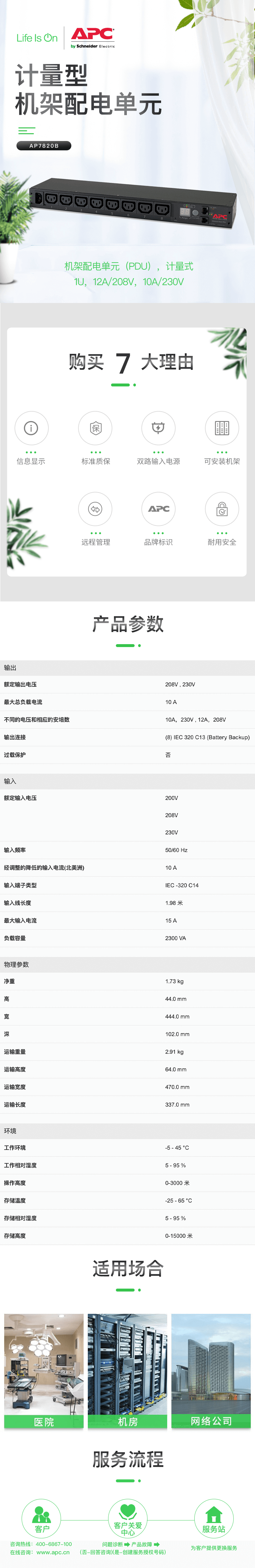施耐德 APC Metered Rack PDU AP7820B 计量型机架配电单元 整组电力计量 远程管理