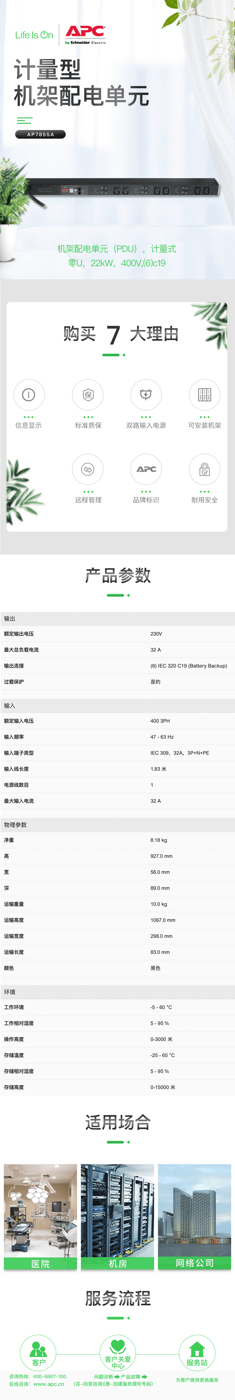 施耐德 APC Metered Rack PDU AP7855A 计量型机架配电单元 整组电力计量 远程管理