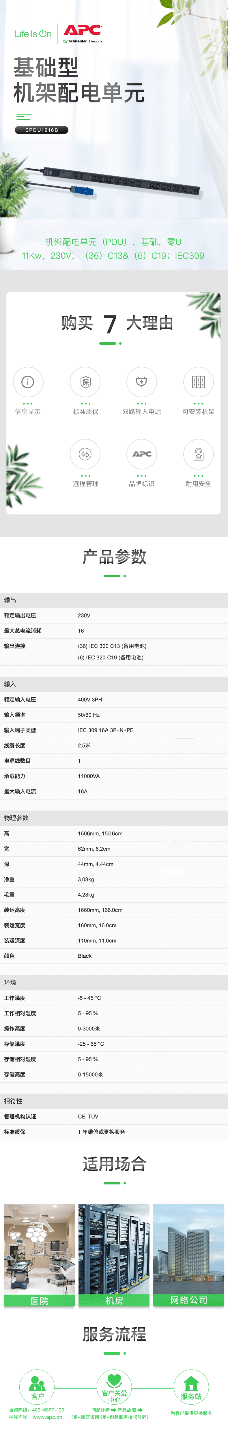 施耐德 APC Easy PDU EPDU1216B 电源分配单元(价格详情,请咨询客服)