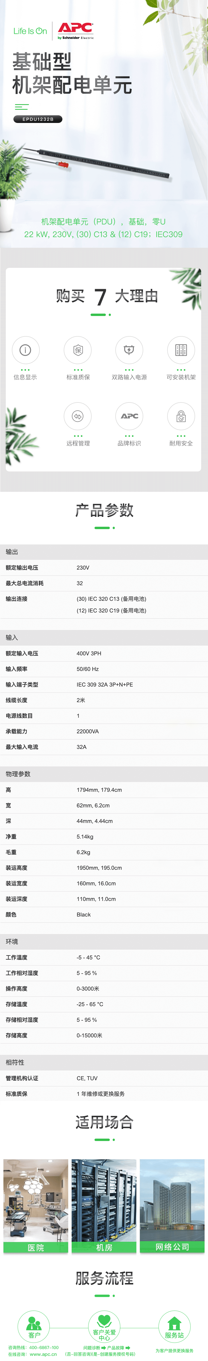 施耐德 APC Easy PDU EPDU1232B 电源分配单元(价格详情,请咨询客服)