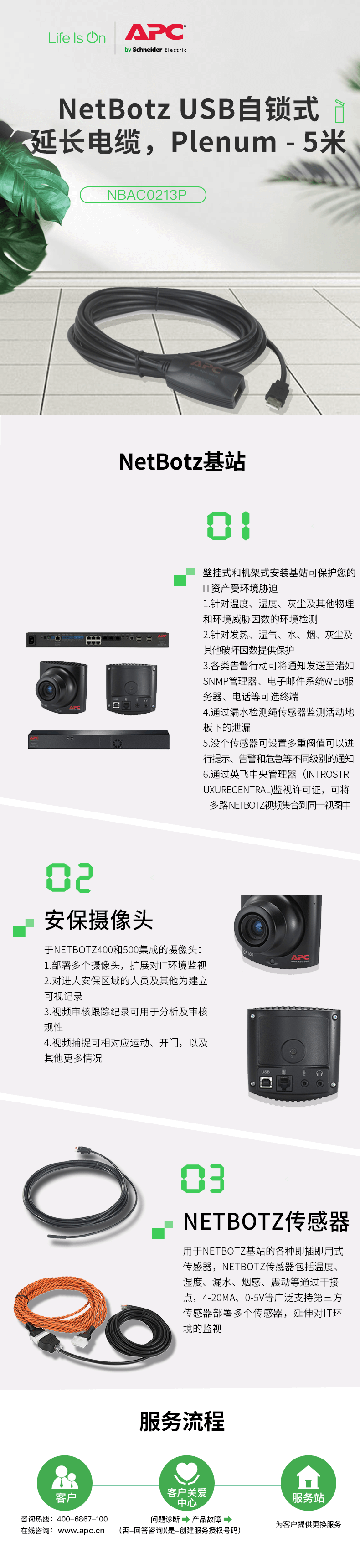 施耐德 APC NetBotz NBAC0213P USB中继线缆 (阻燃,长5米)