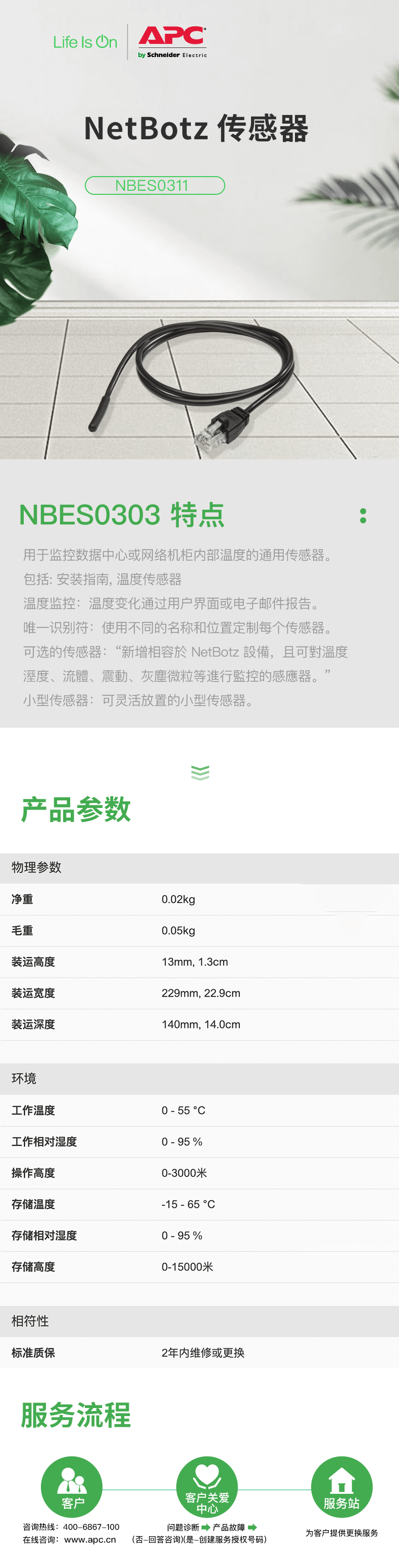 • 产品描述:用于监控数据中心或网络机柜内部温度的通用传感器,国际知名品牌