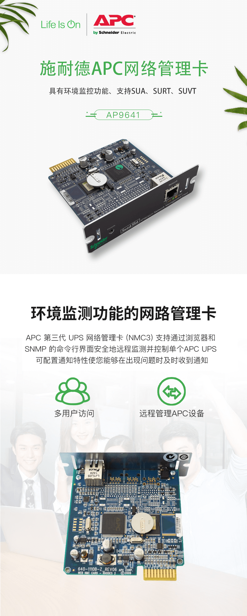 AP9641,APC施耐德UPS 网络管理卡,带环境温度监测功能(新品)