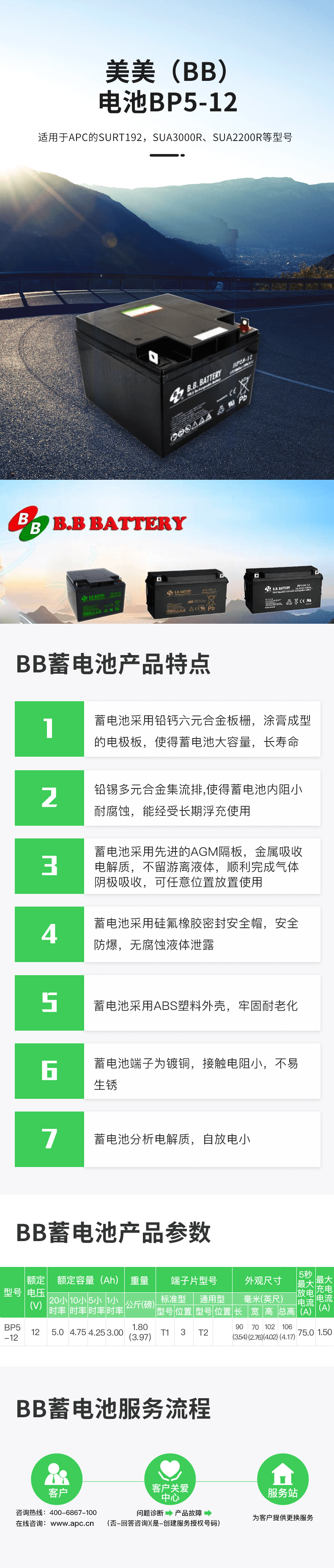 美美(BB)电池BP5-12, 容量5AH,适用于APC的SURT192,SUA3000R、SUA2200R等型号