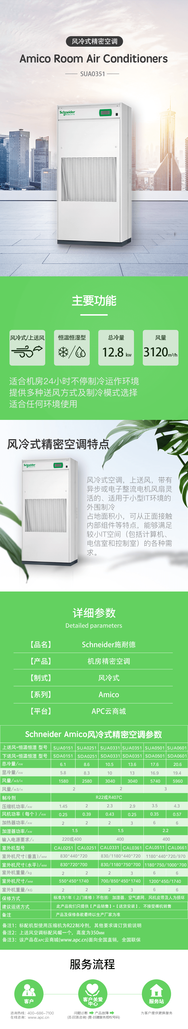 SUA0351 施耐德精密空调 风冷式/上送风 总制冷量:13.6KW 【 安装服务为备选项】
